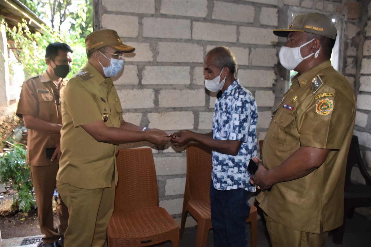 Kupang, MN – Wali Kota Kupang, Dr. Jefirstson R. Riwu Kore, MM, MH menyerahkan kunci rumah yang telah selesai dibedah oleh Pemerintah Kota Kupang kepada 5 orang kepala keluarga di Kota Kupang, Selasa (11/01). Semua penerima manfaat bantuan bedah rumah program pemerintah Kota Kupang kali ini merupakan warga usia lanjut. Salah satu di antaranya adalah seorang janda yang mengalami kelumpuhan akibat sakit yang dideritanya selama tujuh tahun terakhir.