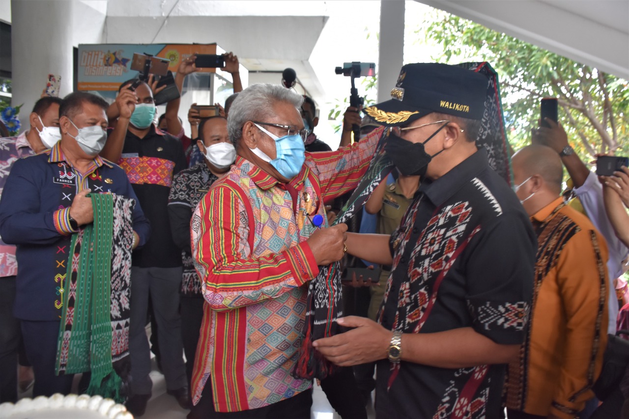 Dari kejauhan terlihat mobil biru berplat nomor DH 1 A semakin mendekat. Yang dinantikan akhirnya tiba. Sang Yubilaris, Wali Kota Kupang, Dr. Jefirstson R. Riwu Kore, MM,MH yang hari ini merayakan ulang tahun ke-62 tiba di kantor, didampingi istri, Ny. Hilda Riwu Kore. Tepuk tangan meriah seluruh ASN dan pejabat yang hadir menyambut kehadirannya sejak gerbang masuk hingga lobi utama kantor Wali Kota Kupang. Dengan tangan terkatup, sambil sesekali melambaikan tangan, sosok sederhana dan rendah hati itu tak henti-hentinya mengucapkan terima kasih kepada semua yang sudah menantinya untuk memberi ucapan selamat.