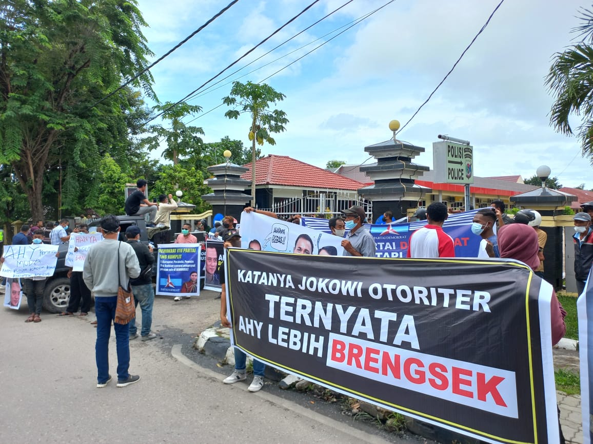 Dalam orasinya, Koordinator masa aksi Herison Kore menyampaikan bahwa Ketua Umum Partai Demokrat tidak cocok menjadi seorang pemimpin partai. Hal itu dikarenakan, AHY tidak memiliki etika politik dalam mengurus partai.