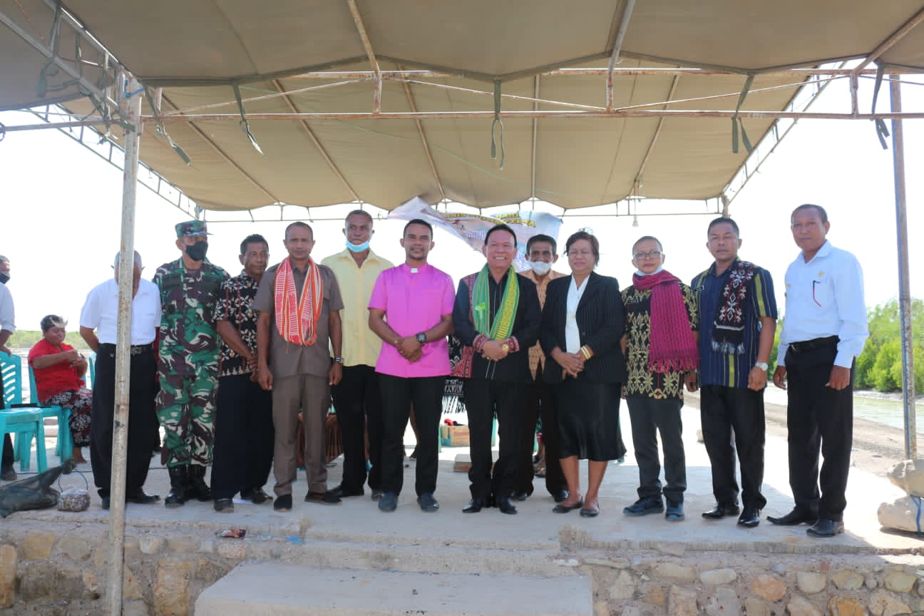 Sulamu, MN – Bupati Kupang Korinus Masneno, didampingi Staf Ahli Bupati, Pandapotan Siallagan mengikuti kebaktian bahari, bersama Jemaat Bethesda Oeteta Klasis Sulamu, dalam rangka syukuran panen hasil laut nelayan tangkap udang dan petambak garam, di Lokasi Tambak Garam Desa Oeteta, Jumat 8 April 2022. Turut hadir anggota DPRD Kab.Kupang, Otniel Noel, Kabag Umum Setda Kab.Kupang, John Sula, Sekretaris Pertanian, Timotius Octovianus, Perwakilan Dinas Perikanan Kab.Kupang, Camat Sulamu, para Kepala Desa, serta undangan lainnya.
