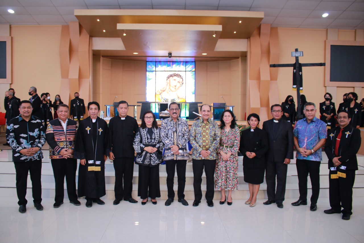 Kupang, MN – Ibadah Jumat Agung GMIT Kaisarea untuk mengenang kisah penyaliban dan kematian Yesus Kristus Tahun ini berbeda dari tahun-tahun sebelumnya. Ibadah Jumat Agung yang mengusung tema “Kematian Yesus Membaharui Kita” GMIT Kaisarea Kolhua kali ini dihadiri oleh Walikota Kupang Dr. Jefirstson R. Riwu Kore, MM.,MH dan Walikota Ambon Richard Louhenapessy, SH. Dipimpin oleh Pendeta Vensen J.O Siar, S.Th.,MM, Kedua kepala daerah tersebut hadir tepat waktu dan mengikuti prosesi ibadah sejak Pukul 09:00 Wita hingga selesai pukul 11:00. Sabtu (15/04/2022).