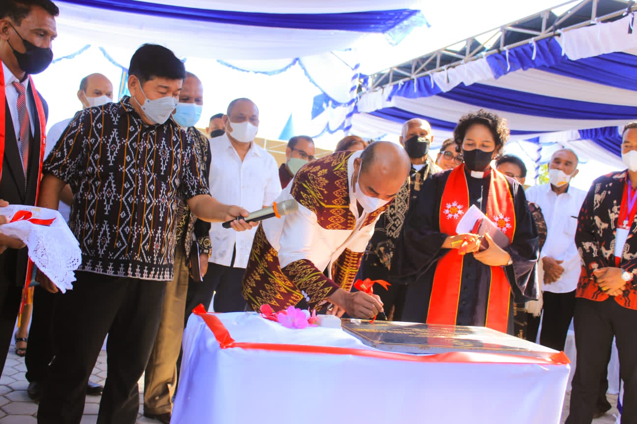 Noelbaki, MN – Gubernur NTT, Victor Bungtilu Laiskodat didampingi Wakil Bupati Kupang, Jerry Manafe disambut dengan sukacita oleh Ketua Sinode GMIT, para Pendeta se-Klasis Kupang Tengah bersama Jemaat, dalam acara peresmian dan pentahbisan Gedung Kebaktian Jemaat Samaria Noelbaki. Minggu (8/5), yang beralamat di Jln.Timor Raya KM.16 Desa Noelbaki Kecamatan Kupang Tengah, Kabupaten Kupang. turut dihadiri Walikota Jayapura Provinsi Papua, Benhur Tomi Mano, anggota DPRD Prov.NTT, pejabat dari Polda NTT dan Polres Kupang, serta tokoh masyarakat dari umat Muslim maupun Katholik.