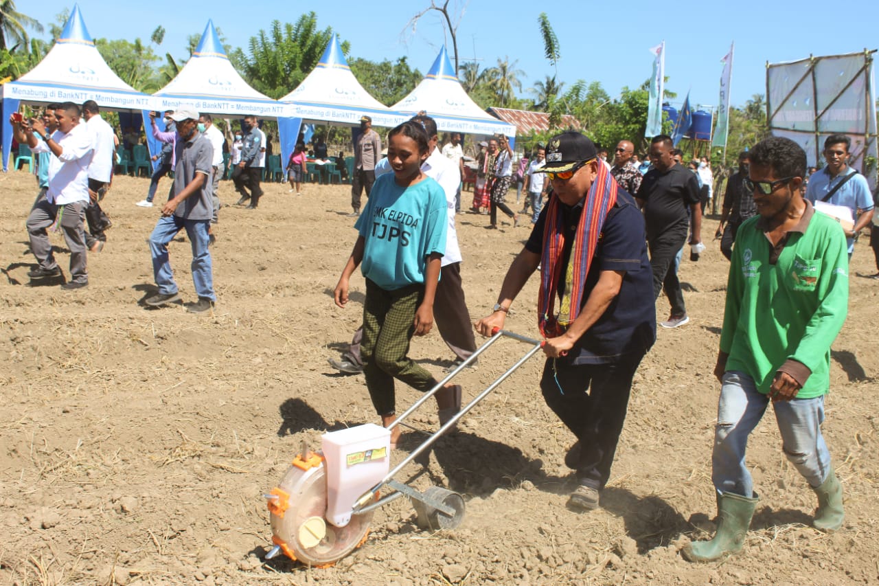 Noelbaki, MN – Gubernur NTT Viktor Bungtilu Laiskodat bersama rombongan dalam kunjungan kerjanya pada Rabu (11/5) melakukan penanaman secara simbolis di lahan TJPS SMK Elpida Noelbaki seluas 10 hektar di desa Poto Kecamatan Fatuleu Barat, yang mana kegiatan penanaman ini juga merupakan kegiatan memperingati hari ulang tahun Yayasan Elpida yang ke-10. Kegiatan ini bisa mendorong para siswa Elpida menjadi pemuda milenial yang sukses dalam program Tanam Jagung Panen Sapi (TJPS)