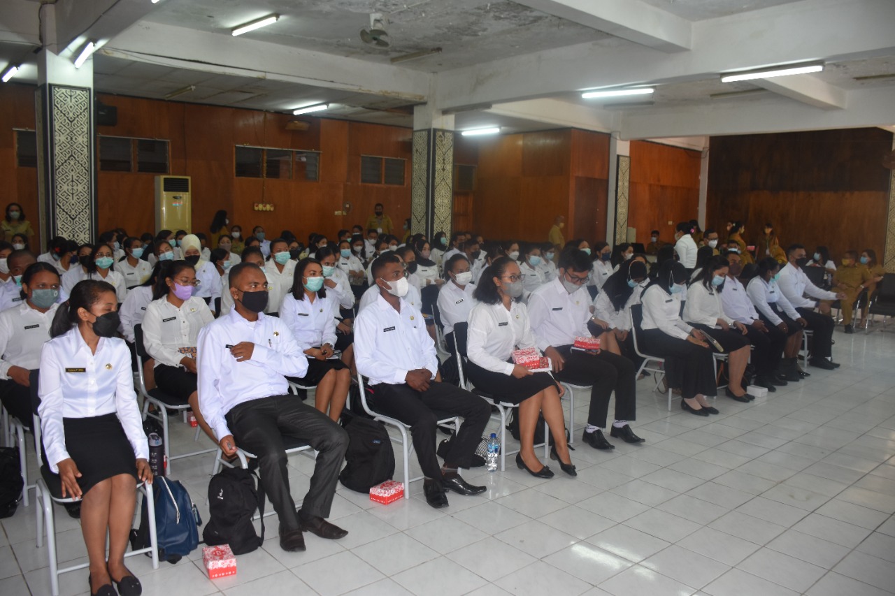 Kupang, MN – Wali Kota Kupang, Dr. Jefirstson R. Riwu Kore, MM., MH, membuka kegiatan orientasi dan pembekalan Calon Pegawai Negeri Sipil (CPNS) Kota Kupang formasi tahun 2021 tahun anggaran 2022. Kegiatan berlangsung di Aula Sasando Lantai III, Kantor Walikota Kupang, Senin (20/6). Turut hadir mendampingi Wali Kota, Sekretaris Daerah Kota Kupang, Fahrensy P. Foenay, SE., MM., Kepala BKPPD Kota Kupang A.D.E Manafe S.IP., M.Si. Staf Ahli Walikota Kupang Bidang kemasyarakatan dan Sumber Daya Manusia, dr. Ari Wijana, M.Si dan Staf Ahli Wali Kota Kupang bidang Ekonomi dan Pembangunan, Maria M. Detaq, S.IP.
