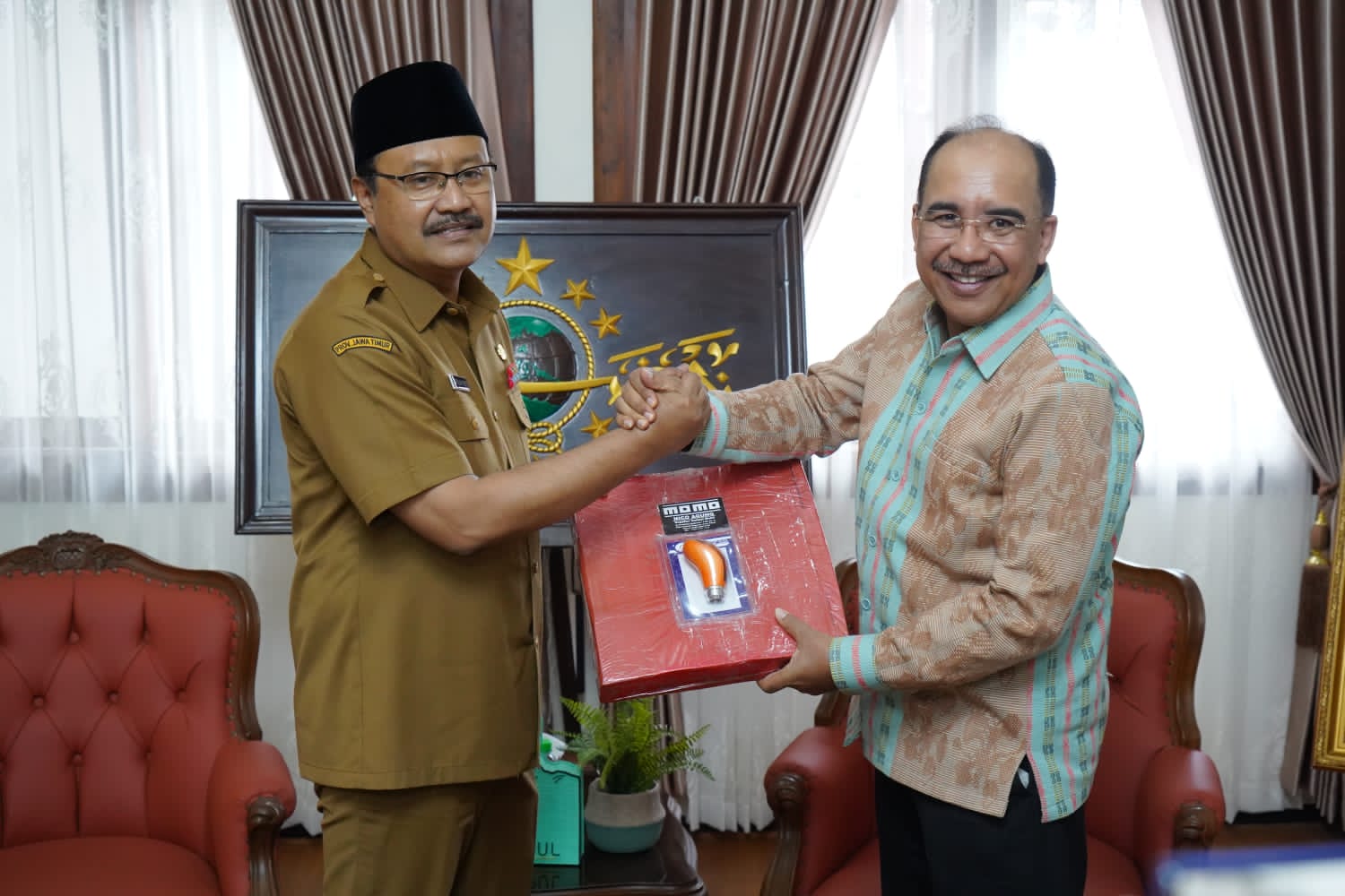 Kupang, MN – Walii Kota Kupang, Dr. Jefirstson R. Riwu Kore, MM, MH menyerahkan berita acara keputusan rapat kerja komisariat wilayah IV ke 17 APEKSI tahun 2022 dalam pertemuan dengan Wali Kota Pasuruan, Drs. H. Saifullah Yusuf di rumah jabatan Wali Kota Pasuruan, kemarin, Senin (27/6). Berita acara yang diserahkan berisi beberapa poin rekomendasi hasil rakerkomwil yang diselenggarakan di Kota Kupang tanggal 21 sampai dengan 23 Juni 2022 yang lalu.