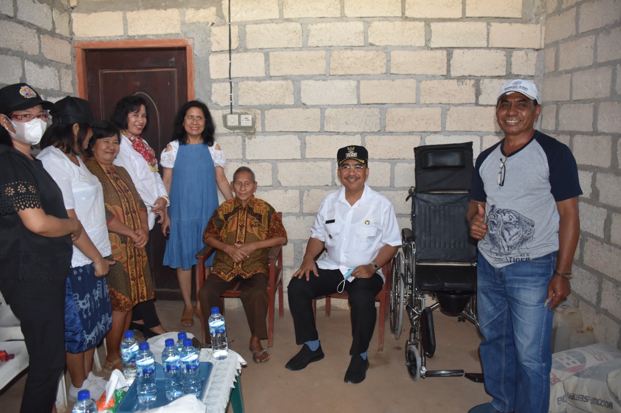 Kupang, MN – Walikota Kupang, Dr. Jefirstson R. Riwu Kore, MM., MH., dan Ketua TP PKK Kota Kupang, Ny. Hilda Riwu Kore-Manafe, SE., MM. menyerahkan kursi roda kepada Eduard Lenggu, seorang lansia di RT 15, RW 05 Kelurahan Manulai Dua, Kecamatan Alak, Rabu (3/8). Dalam kesempatan ini, Walikota dan Ketua TP PKK didampingi Camat Alak Yulius Wulem Pally, SH., dan Lurah Manulai Dua, Meksian Mauk.