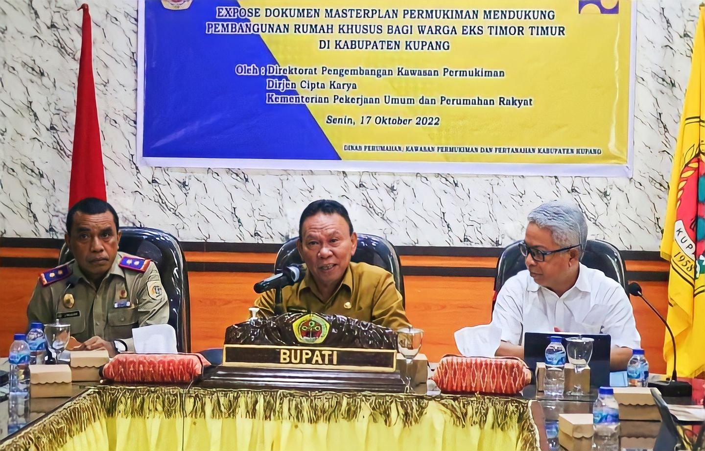 Oelamasi, MN – Bupati Kupang Korinus Masneno membuka kegiatan Expose Dokumen Master Plan Permukiman Ex Tim-Tim di ruang rapat Bupati Kupang d di Oelamasi, Senin (17/10/2022).