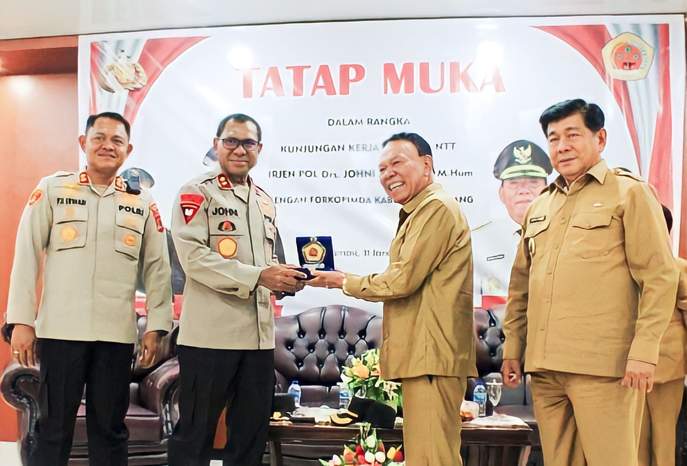 Oelamasi, MN – Kepala Kepolisian Negara Republik Indonesia Daerah (Kapolda) NTT, Irjen Pol. Drs.Johni Asadoma, M.Hum bersama rombongan dari Polda NTT melakukan kunjungan kerja ke Pemerintah Kabupaten Kupang, Selasa 31/1/2023. Kunjungan kerja Jenderal bintang dua ini diterima oleh Bupati Kupang Korinus Masneno, Wakil Bupati Kupang Jerry Manafe serta unsur Forkompimda Kabupaten Kupang, yang berlangsung di Kantor Bupati Kupang di Oelamasi.