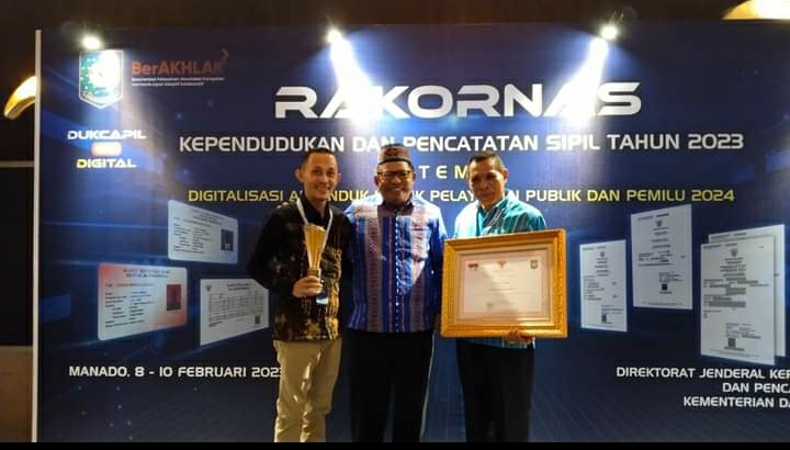 Diketahui penghargaan tersebut diterima langsung oleh Bupati Agas saat mengikuti Rapat Koordinasi Nasional Kependudukan dan Pencatatan Sipil (Rakornas Dukcapil) Tahun 2023 yang diselenggarakan oleh Direktorat Jenderal Kependudukan dan Pencatatan Sipil Kementerian Dalam Negeri berlangsung di Manado Provinsi Sulawesi Utara.