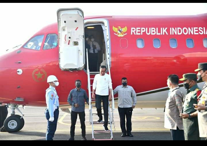 Jakarta, MN – Presiden Joko Widodo tiba di Bandara Malikussaleh, Kabupaten Aceh Utara, Provinsi Aceh, pada Jumat, 10 Februari 2023.
