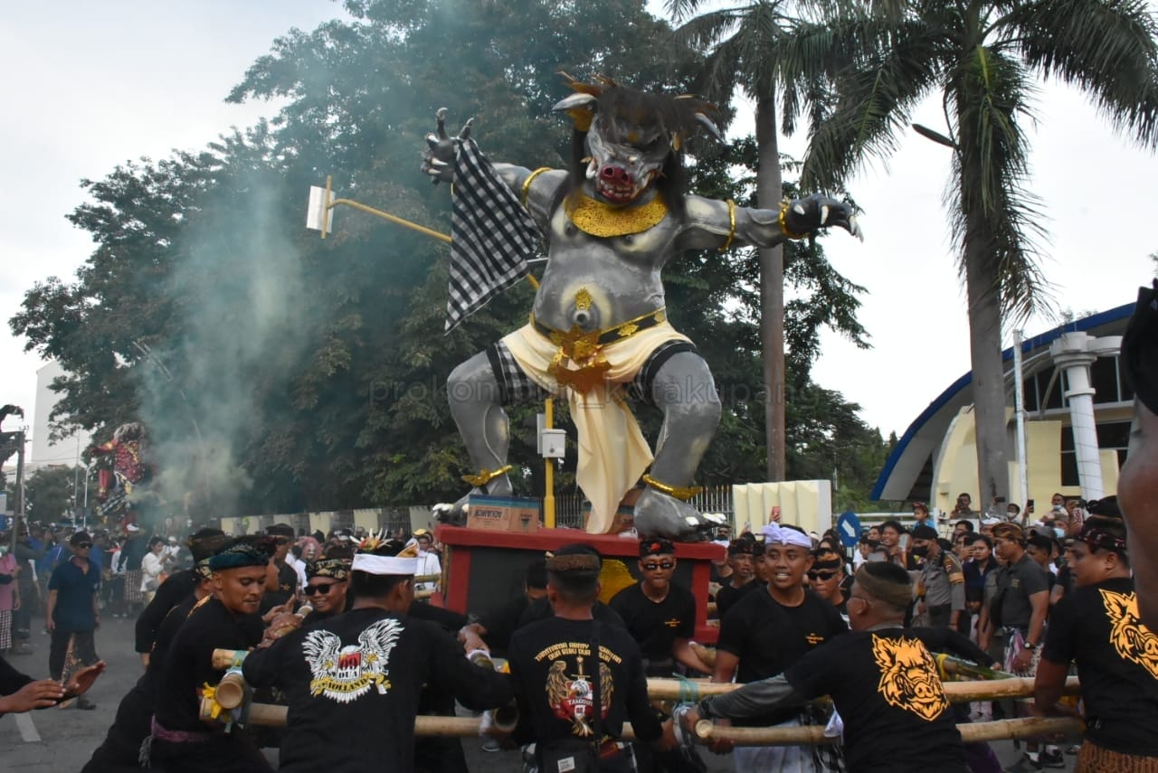 Kupang, MN – Dalam rangka menyambut Hari Raya Nyepi Tahun Baru Saka 1945, Umat Hindu Kota Kupang kembali menggelar Pawai Ogoh-ogoh. Ogoh-ogoh yang dimaknai oleh umat Hindu sebagai presentasi sifat buruk di dalam diri manusia diarak keliling sepanjang jalan El Tari, kemudian dibakar sebagai simbol telah hilangnya sifat buruk di dalam diri manusia. Pawai Ogoh-ogoh sudah menjadi agenda rutin Umat Hindu Kota Kupang yang difasilitasi oleh Pemerintah Kota Kupang, meskipun sejak tahun 2020 tidak digelar akibat pandemi covid 19.