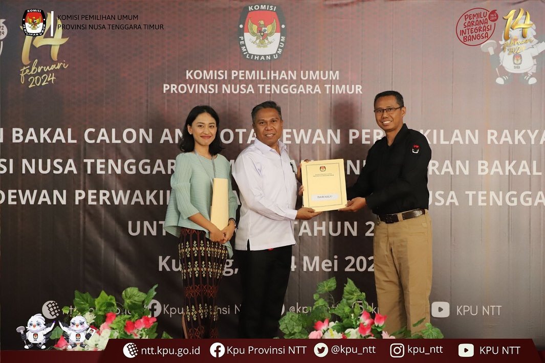 Kupang, MN – Komisi Pemilihan Umum Provinsi Nusa Tenggara Timur menerima dokumen pendaftaran Bakal Calon Anggota Dewan Perwakilan Daerah Provinsi NTT Peserta Pemilu Tahun 2024 Maria Caecilia Stevi Harman bertempat di Kantor KPU Provinsi NTT, Rabu (10/05/2023).