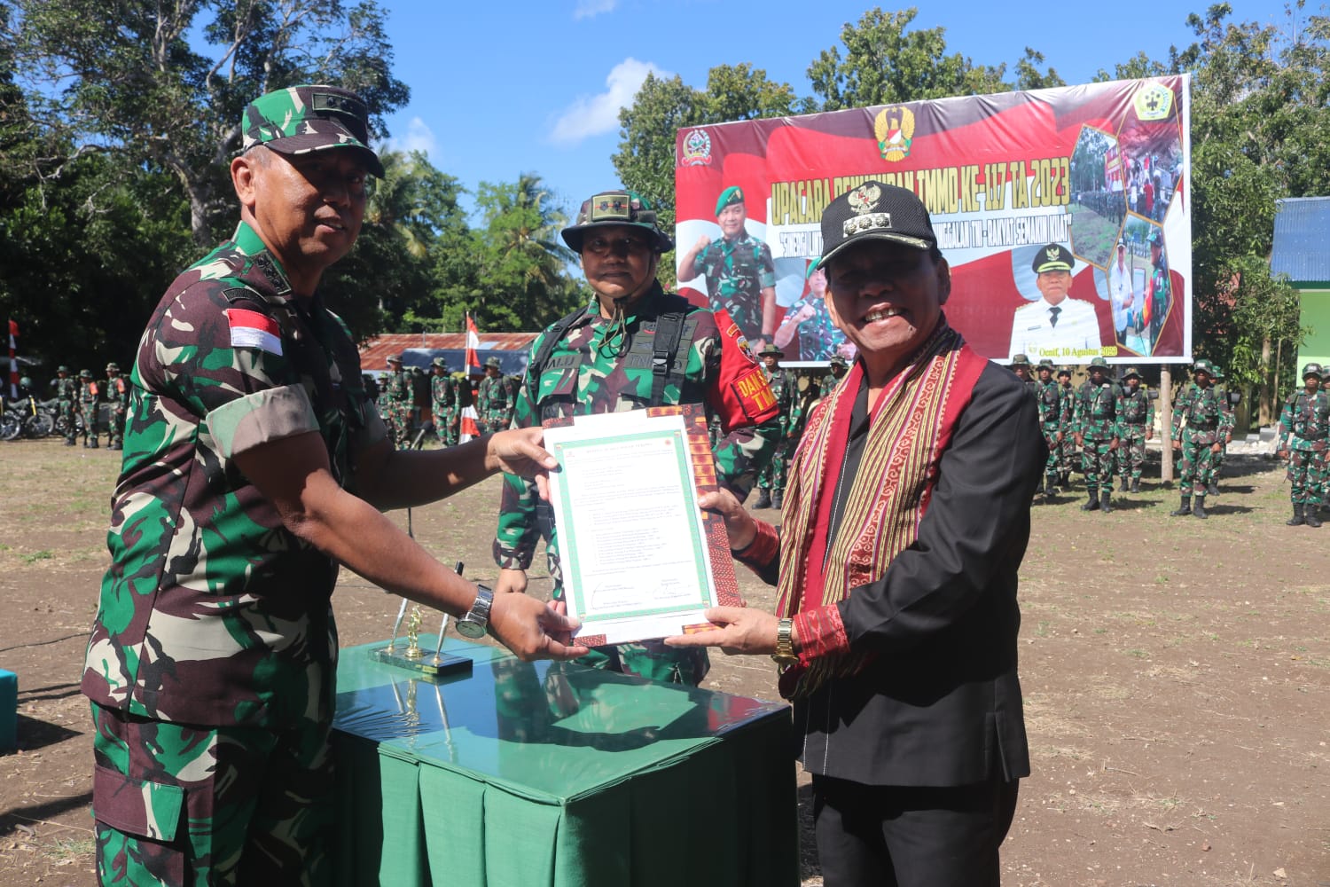 Kasipers Korem 161 Wirasakti Kupang Kol. Inf Yudiono membacakan sambutan Pangdam IX Udayana Mayjen TNI Soni Aprianto dalam upacara penutupan TMMD ke 117 menyatakan TMMD merupakan bukti kemanunggalan TNI dengan rakyat. Lokus kegiatan ini dilaksanakan pada daerah pedesaan, terpencil atau terisolir serta daerah yg terdampak bencana. Besar harapan dengan kegiatan ini mendukung percepatan pembangunan melalui sasaran fisik dan non fisik dan dapat dirasakan langsung oleh masyarakat.