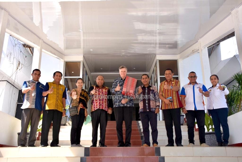 Kupang, MN – Pelaksana Harian (Plh.) Sekda Kota Kupang, A. D. E. Manafe, S.IP., M.Si., menerima kunjungan Duta Besar (Dubes) Selandia Baru untuk Indonesia, Kevin Jeffery Burnett, ONZM., diruang kerjanya, Kamis (31/8). Sejumlah topik yang dibahas dalam kunjungan tersebut antara lain terkait pendidikan, pariwisata, pertanian, ketersediaan air bersih hingga pelatihan kerja untuk menekan angka pengangguran. Turut hadir, Development Programme Coordinator New Zealand Embassy, Lucia Fransisca, Para Asisten Sekda, Kepala Dinas Sosial Kota Kupang serta Sekretaris BPBD Kota Kupang.