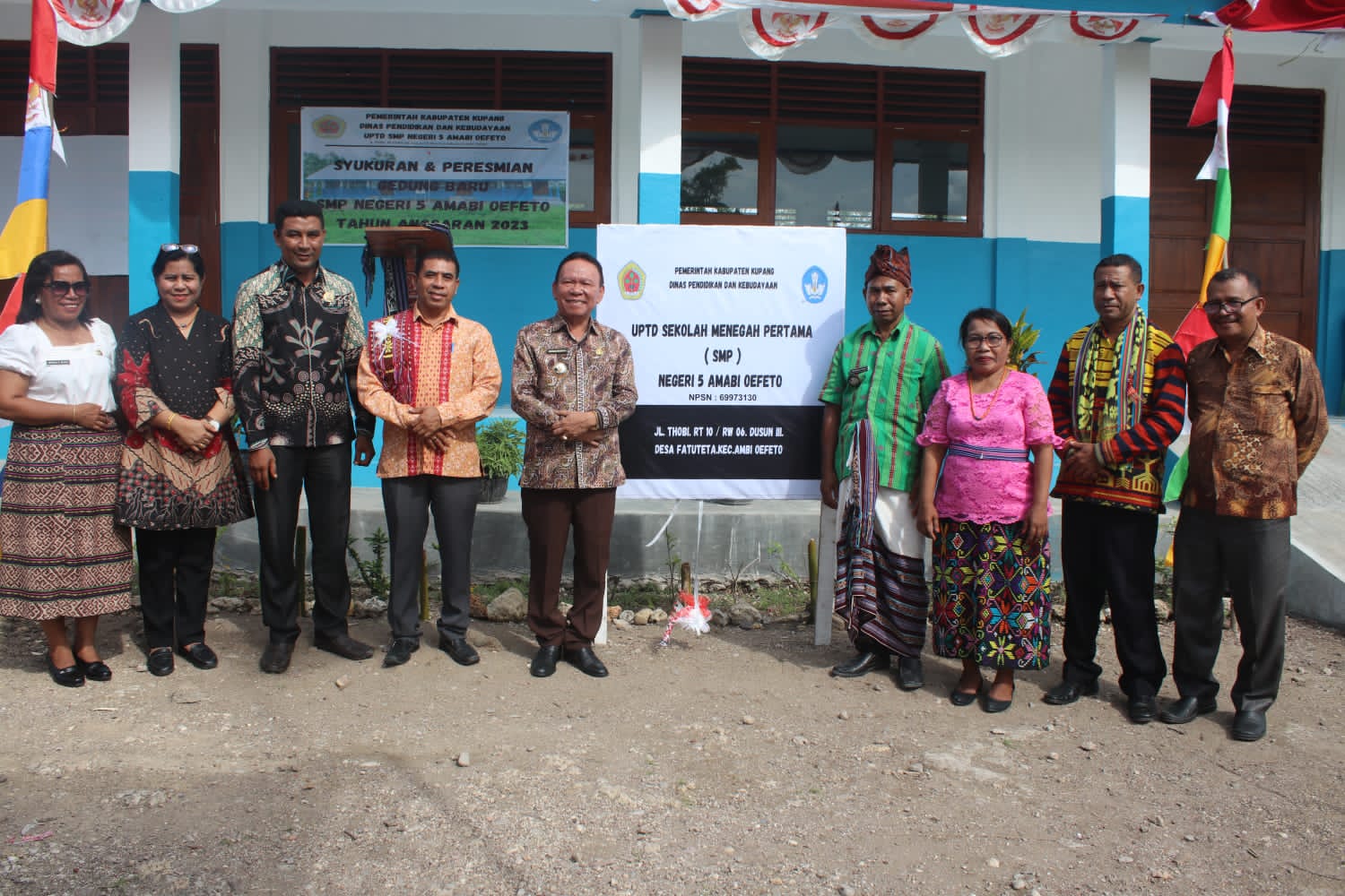 Amabi, MN – Bupati Kupang Korinus Masneno menghadiri acara syukuran peresmian gedung baru UPTD SMP Negeri 5 Amabi Oefeto Satu Atap, Jumat (19/1/2024).
