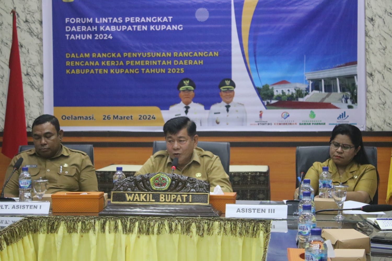 Oelamasi, MN – Wakil Bupati Kupang, Jerry Manafe secara resmi membuka kegiatan Forum Lintas Perangkat Daerah Kabupaten Kupang Tahun 2024, dalam rangka Penyusunan Rancangan Rencana Kerja Pemda Tahun 2025, berlangsung di Kantor Bupati di Oelamasi, Selasa (26/3/2024).