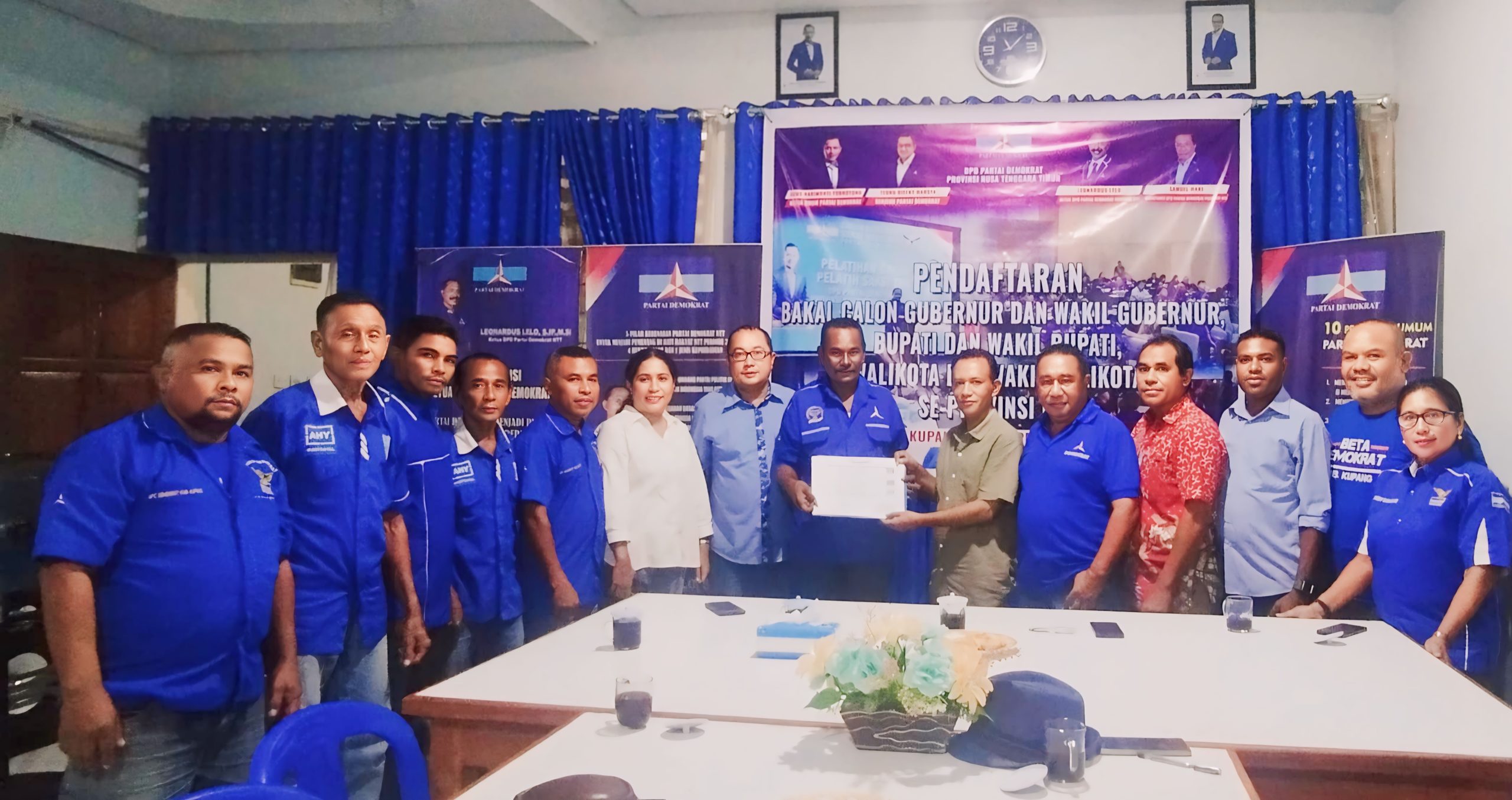 Pada Selasa, 23 April 2024, jam 5 sore, Satgas Pilkada Kabupaten Kupang dan Pimpinan DPC Demokrat secara resm sudahi melaporkan proses Penjaringan Calon Bupati dan Wakil Bupati Kupang kepada pimpinan DPD Partai Demokrat NTT