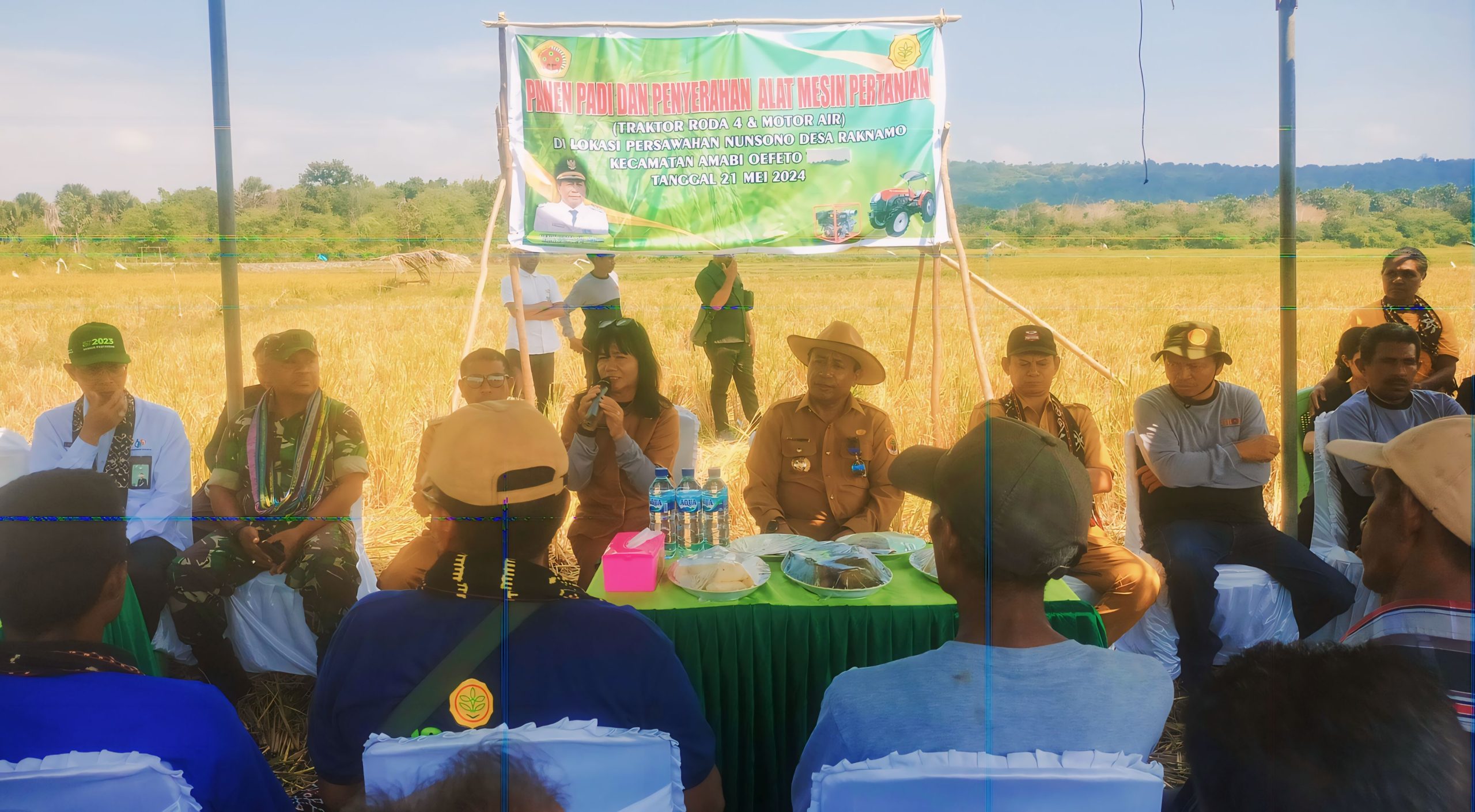 Untuk diketahui, persawahan Nunsono di Desa Raknamo, Kecamatan Amabi Oefeto, seluas kurang lebih 40 hektar, dikelola sebanyak 70 anggota kelompok tani yang tersebar dalam 5 kelompok. Pada musim tanam pertama tahun 2024 (Oktober 2023-Maret 2024), seluas 36 hektar lahan diusahakan, sedangkan 4 hektar lahan tidak dapat diolah akibat kekurangan air. Dari lahan yang diolah, sekitar 30 hektar siap dipanen secara bertahap.