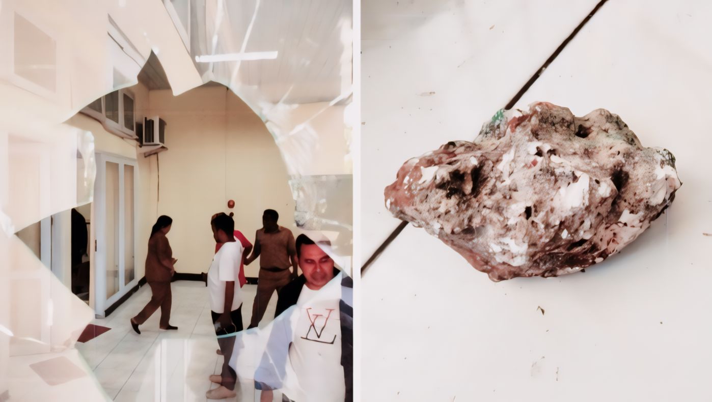 Oelamasi, MN – Diduga dilempar Orang Tidak Dikenal (OTK) sejumlah kaca jendela dan pintu di Kantor Sekretariat Dewan Kabupaten Kupang pecah dan hancur. Disaksikan media ini, Senin (22/7/2024) siang, diameter pecahan kaca jendela yang terkena lemparan batu diperkirakan capai 20 centi meter. Sejumlah pecahan kaca dan beberapa batu bekas lemparan masih tersimpan di lantai dekat kaca jendela yang rusak.