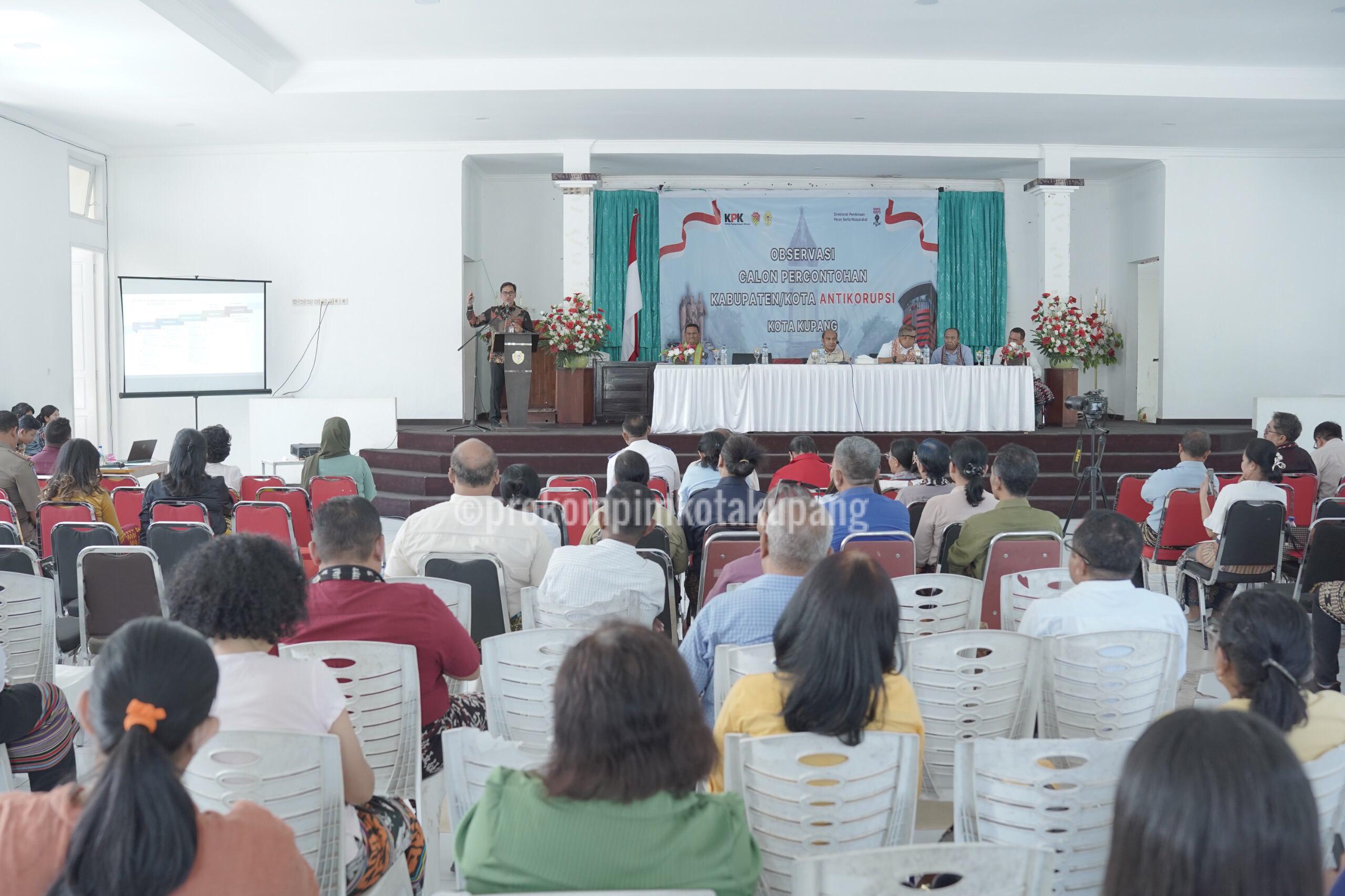 Kupang, MN – Pemerintah Kota Kupang menyatakan kesiapannya mendukung program Komisi Pemberantasan Korupsi (KPK) dalam pembentukan percontohan kabupaten/kota antikorupsi. Hal ini disampaikan oleh Penjabat Wali Kota Kupang, Linus Lusi, S.Pd., M.Pd., dalam kegiatan Observasi Calon Percontohan Kabupaten/Kota Antikorupsi bersama KPK di Aula Rumah Jabatan Wali Kota Kupang. Selasa (10/9). Kota Kupang terpilih sebagai salah satu dari tiga kabupaten/kota di Provinsi Nusa Tenggara Timur (NTT) yang menjadi calon percontohan program ini.