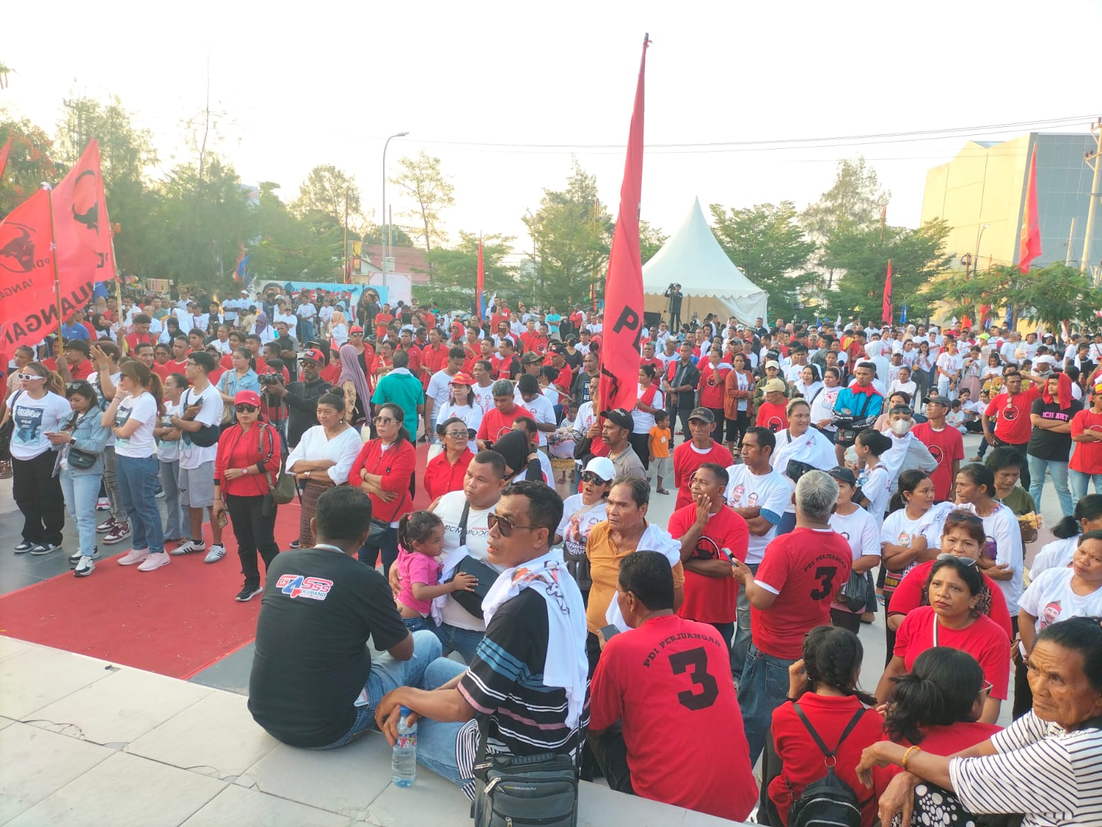 Kupang, MN – Sebanyak 5.000-an pendukung pasangan calon Wali Kota dan Wakil Wali Kota Kupang nomor urut 4, Jefri Riwu Kore dan Lusia Adinda Lebu Raya (Jeriko-Adinda) memadati Alun-Alun Kota Kupang, Selasa (12/11) sore untuk mengikuti Kampanye Akbar Jeriko-Adinda Loka Fest. Kampanye dimulai sekira pukul 16.00 hingga 18.00 Wita.