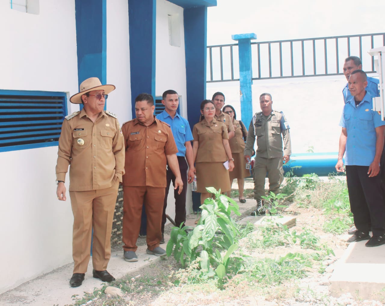 Kupang, MN – Penjabat Bupati Kupang, Alexon Lumba secara langsung meninjau Gedung dan segala sarana dan prasarana yang ada di lokasi Instalasi Pengelolaan Air Minum SPAM Raknamo, Kecamatan Amabi Oefeto, didampingi Plt.Dirut PDAM Kabupaten Kupang Oktovianus Tahik, Kepala Dinas PUPR Teldy Sanam, Kabag Umum Jhon Sula, Senin (18/11/2024).