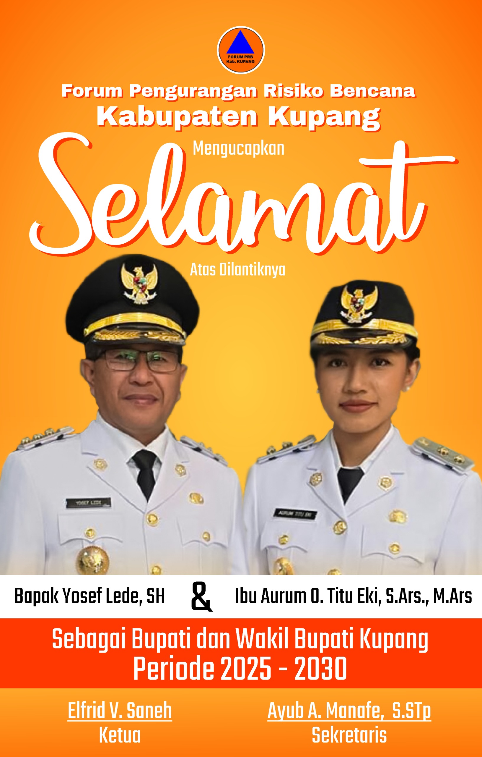 Selaku Ketua Forum Pengurangan Risiko Bencana Kabupaten Kupang, saya Elfrits Saneh mengucapkan proficiat kepada Bupati dan Wakil Bupati Kupang Yosef Lede dan Aurum Titu Eki semoga, di masa Bhakti tahun 2025 – 2030 kerja kolaborasi Pentaheliks yakni, Pemerintah, Masyarakat Sipil, Media, DUnia Usaha dan akademis semakin lebih ditingkatkan guna terwujudnya Kabupaten Kupang yang Tangguh Bencana.