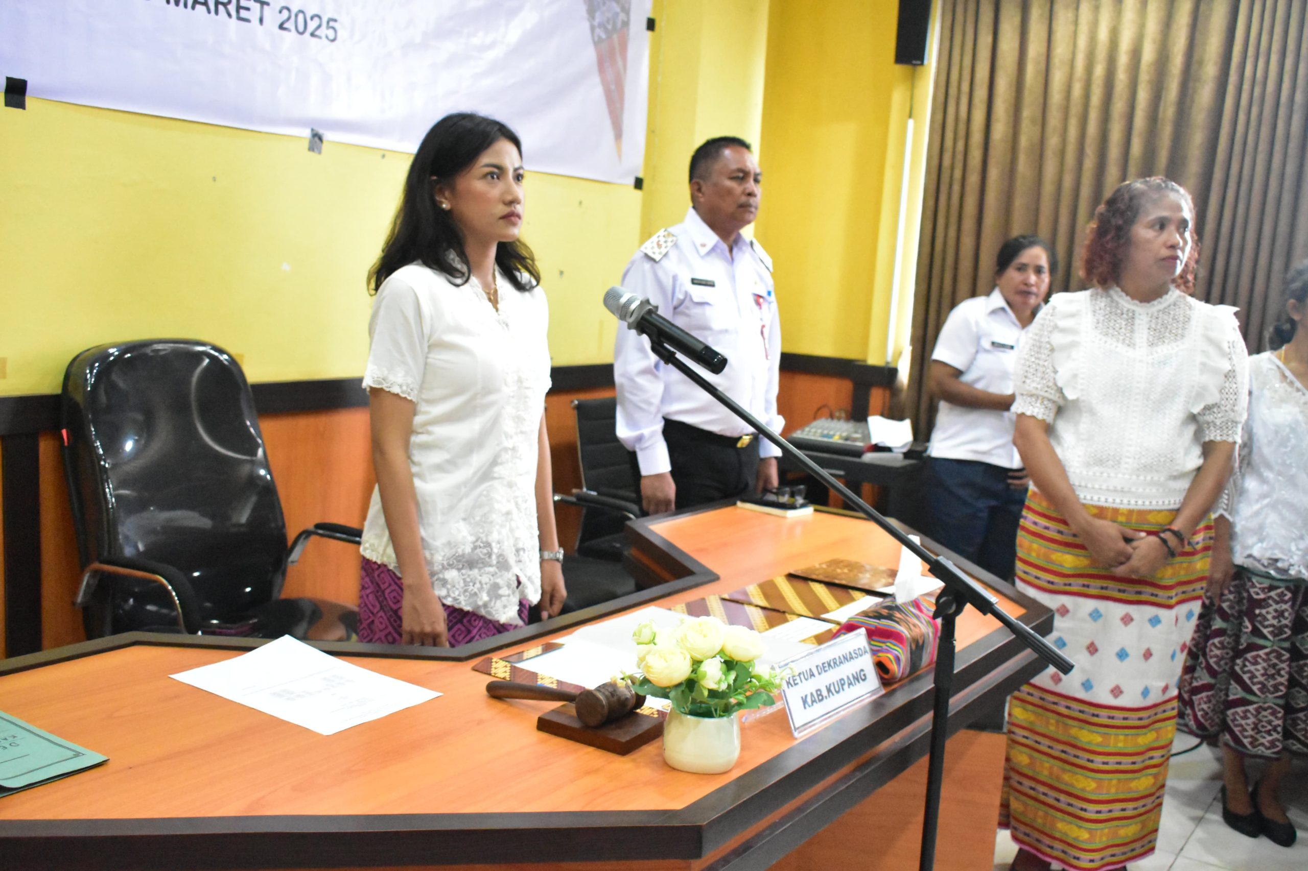 Di saat bersamaan, Ketua Dekranasda Kabupaten Kupang Aurum Titu Eki mengukuhkan pengurus Dekranasda Kabupaten Kupang masa bhakti 2025-2030. Selanjutnya, penyematan PIN kepada pengurus Dekranasda Kabupaten Kupang.
