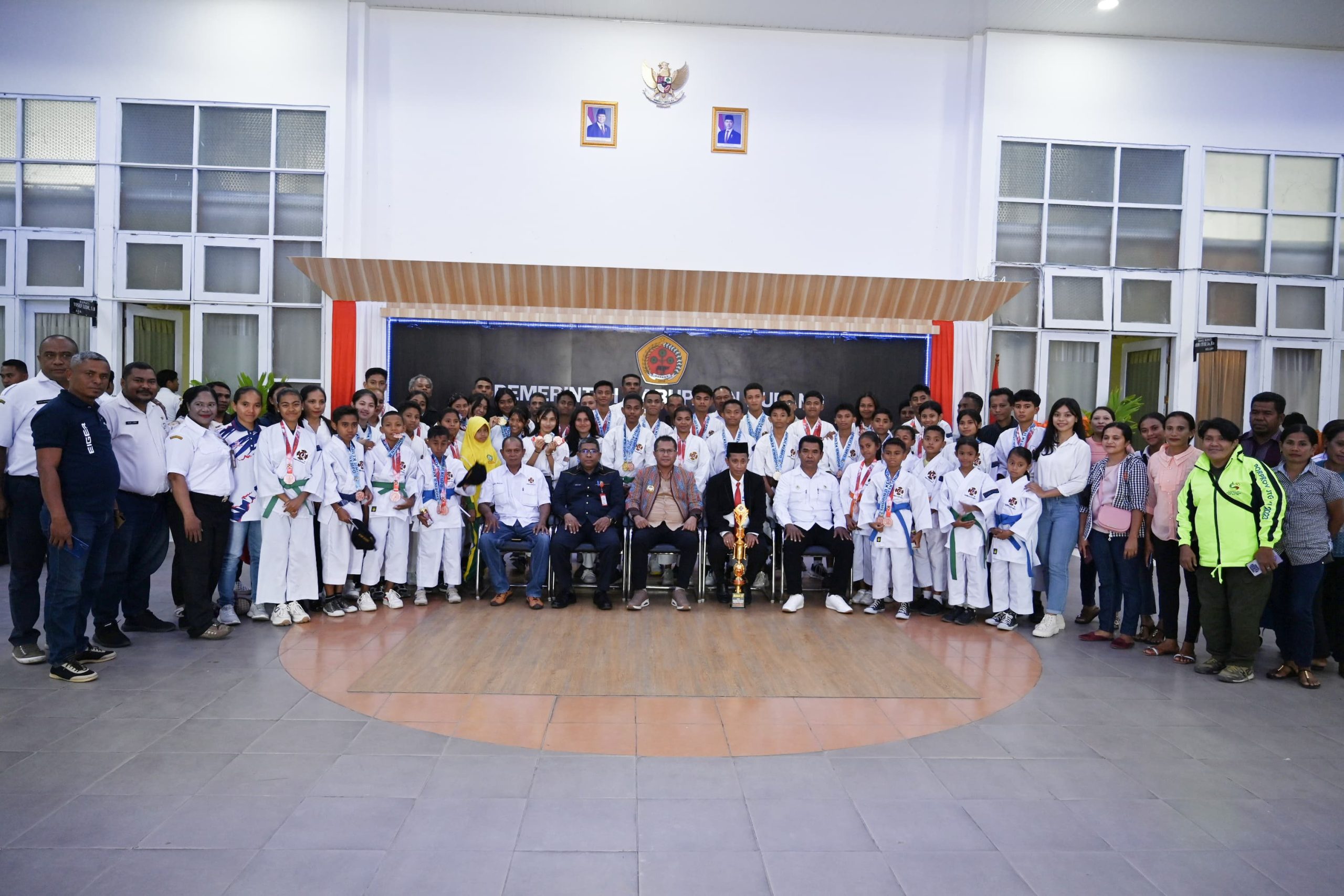Oelamasi, MN – Bupati Kupang, Yosef Lede, menerima kontingen Shorinji Kempo Kabupaten Kupang, yang baru pulang berlaga di Kejurda Kempo Piala Bupati Belu, 21 – 23 Agustus 2025 yang lalu, yang digelar di GOR La Bone, Atambua, Belu. Penerimaan Kontingen Shorinji Kempo oleh orang nomor satu di Kabupaten Kupang berlangsung di ruang rapat Bupati Kupang di Oelamasi. Rabu (27/8).
