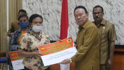 Kupang, MN – Bupati Kupang, Korinus Masneno menyerahkan santunan bagi empat Kepala Keluarga korban bencana…