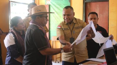 Baumata, MN – Penjabat Bupati Kupang Alexon Lumba menyerahkan secara simbolis administrasi kependudukan berupa Kartu…